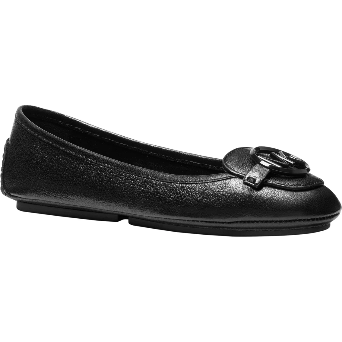 Michael Kors brings a staple to your wardrobe in the classically sleek lines and bold logo hardware on these Lillie moccasin flats. Expertly crafted in a streamlined, feminine silhouette, this shoe offers standout appeal! Style: 40R9LIFP.
