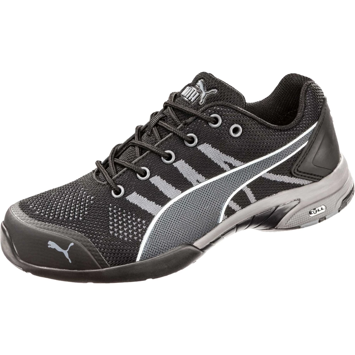 The Puma Safety Women’s Celerity Knit Low SD shoe is a steel toe cap athletic low top with a high quality Safety Knit upper. They are abrasion resistant and feature a lightweight EVA midsole for cushioning, IQ Cell integrated in the heel for extra cushioning and a rubber outsole. The shoe is oil, slip, abrasion and heat resistant. Style: 642925.