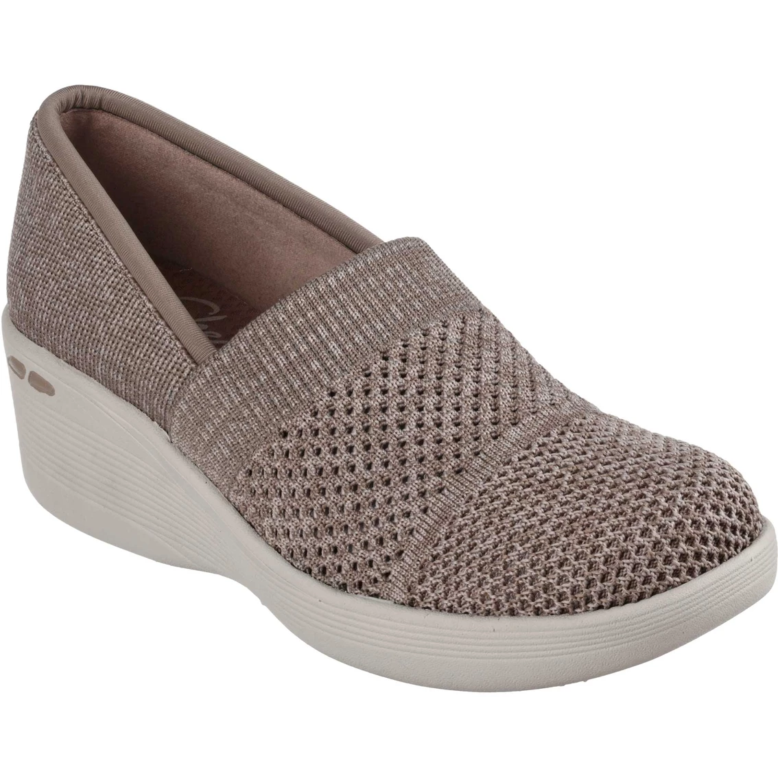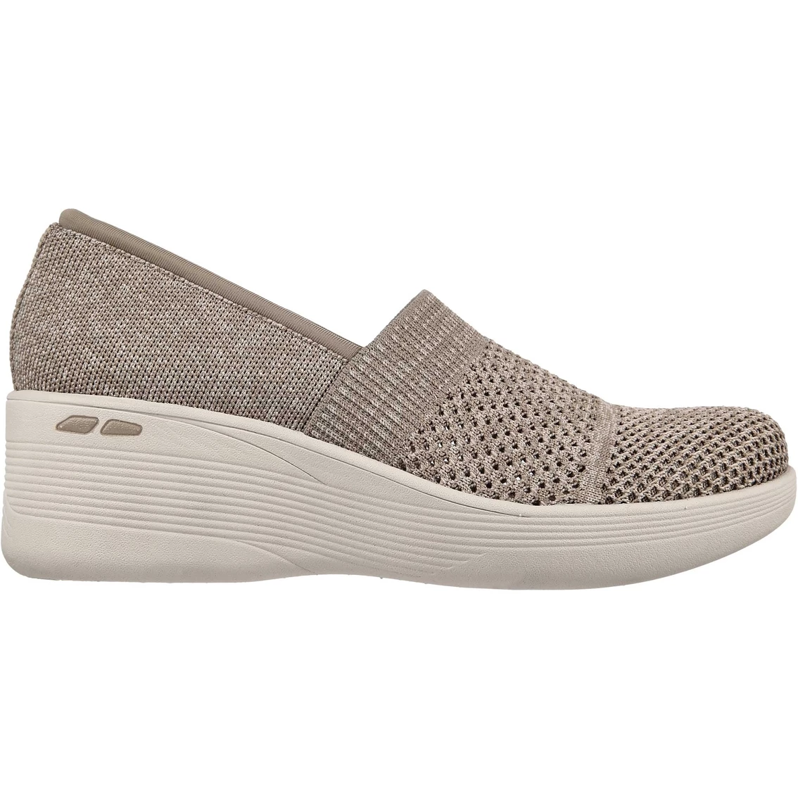 Slip on stylish all-day comfort with Skechers Pier-Lite – Wow Factor. Featuring a Stretch Fit heathered engineered knit upper with a Skechers Air-Cooled Foam Memory comfort insole and wedge heel.