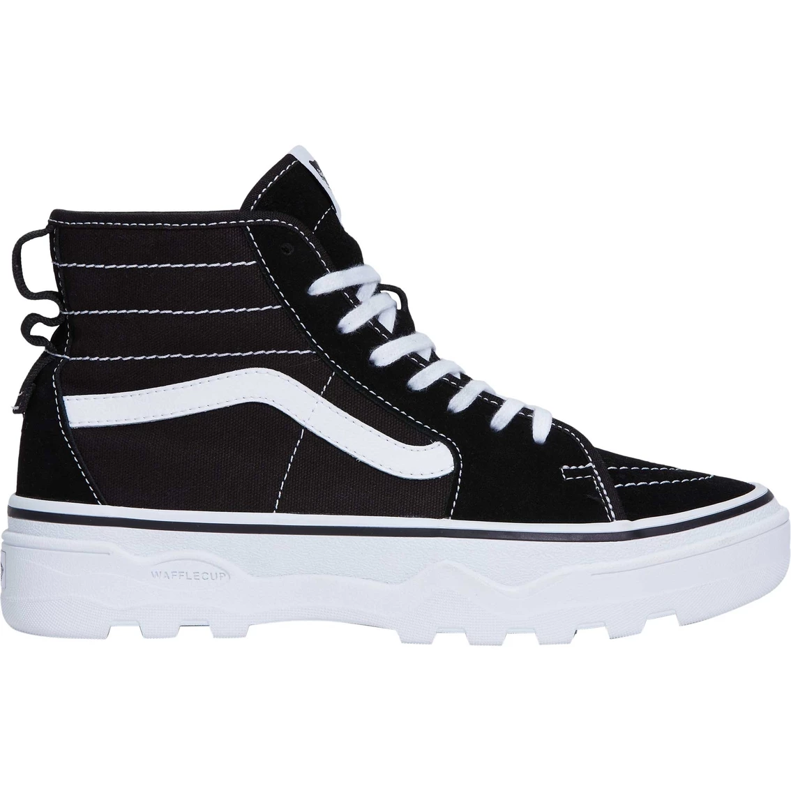The new Sentry Sk8-Hi WC is an icon interpretation of the Vans Sentry WC. Mixing throwback details like our heritage sidestripe with a suede and canvas upper, this high top shoe brings a contemporary edge to an iconic favorite. This Sk8-Hi-inspired, lace-up silhouette also features heel pulls, modern Wafflecup construction and drop-in UltraCush sockliners for maximum comfort. Textured sidewalls and lugged outsoles round out the modern design. Style: VN0A5KY5.